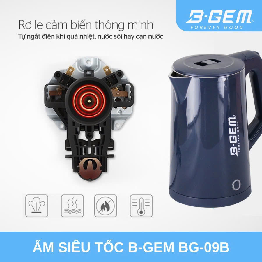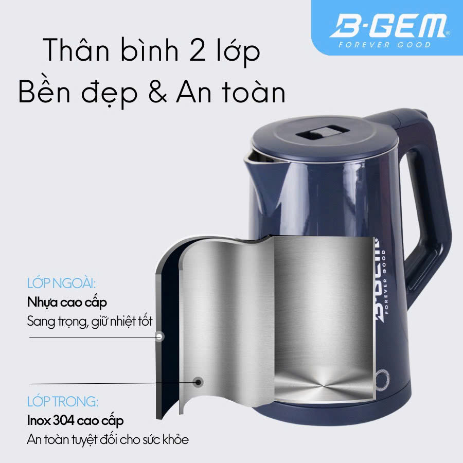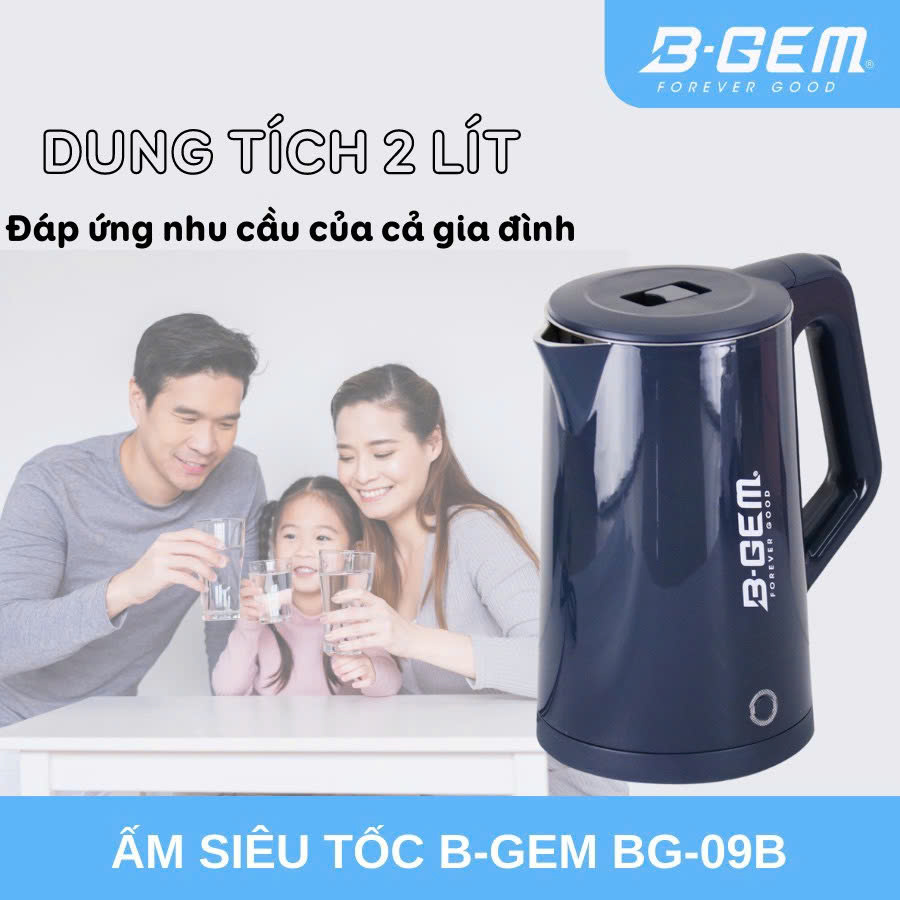 ẤM SIÊU TỐC CAO CẤP 2 LỚP CÁCH NHIỆT DUNG TÍCH 2L B-GEM BG-09B