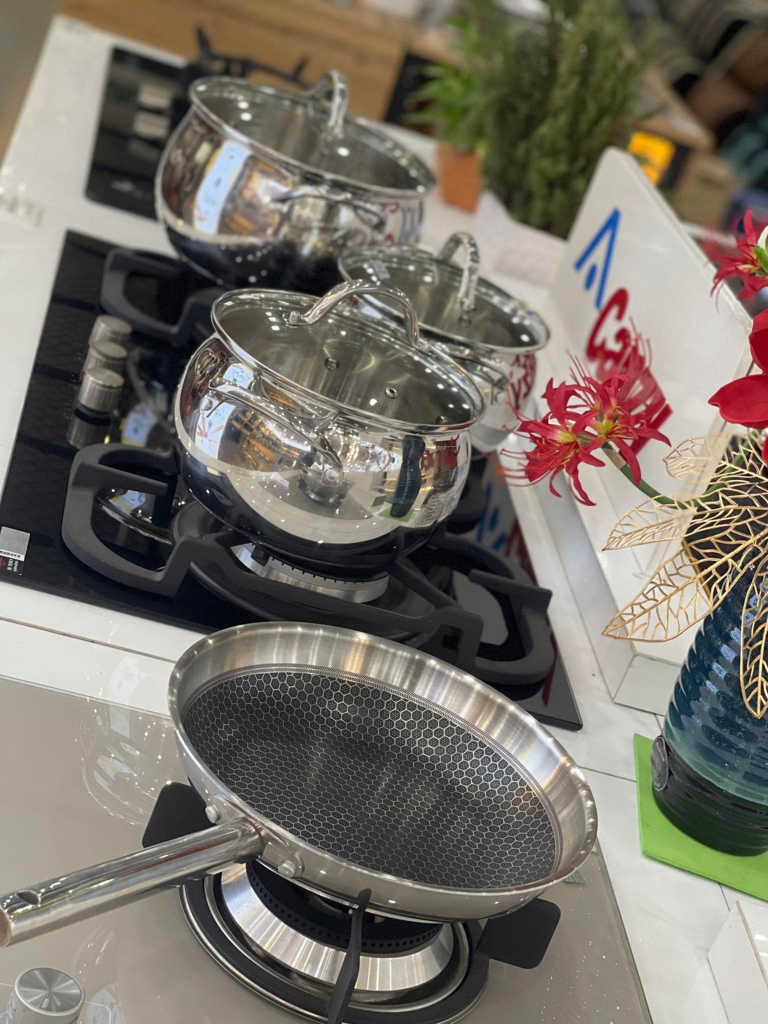 - Kích thước: Nồi Ø18, Ø20 & Ø24; Chảo Ø24
