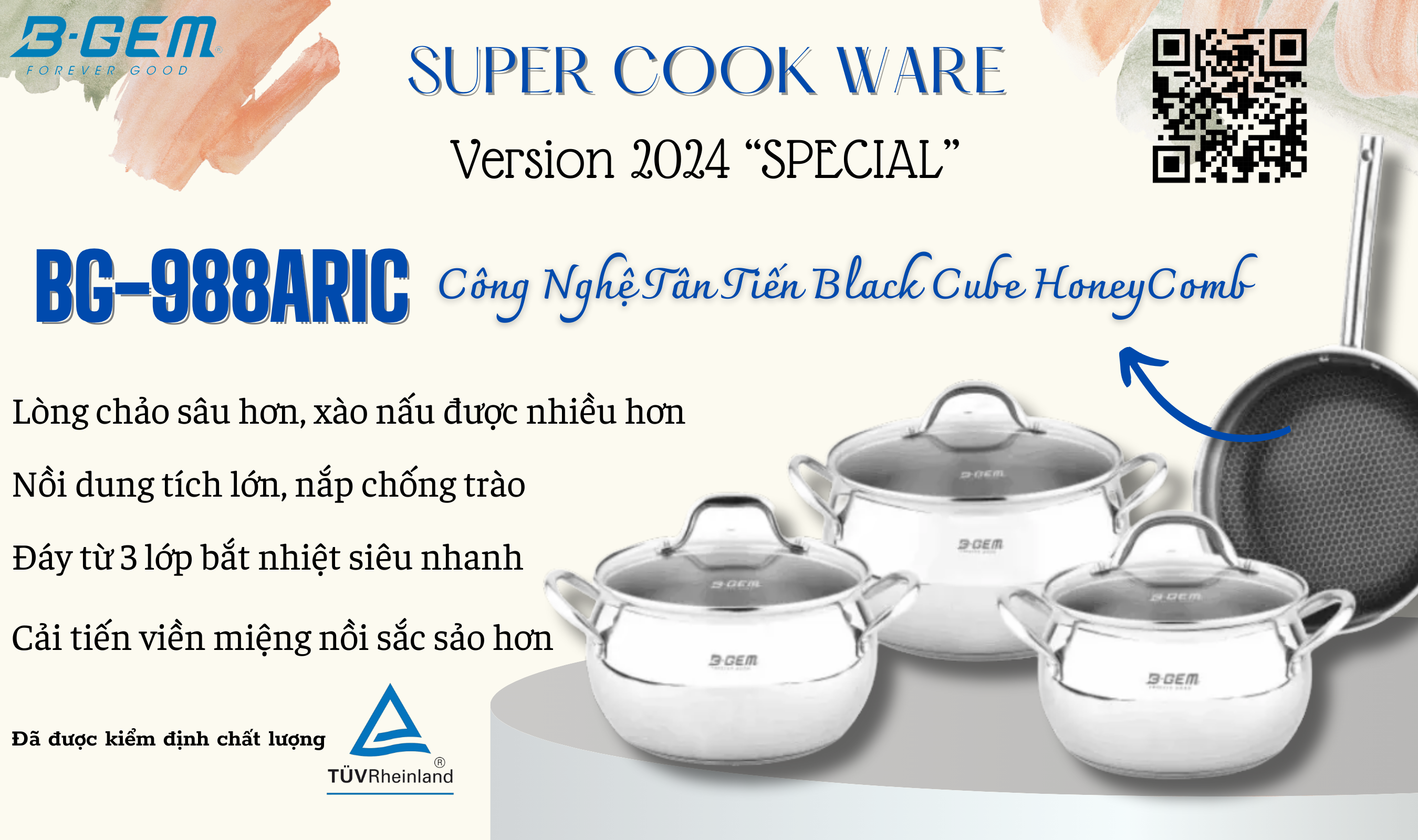 - Chảo tri-ply material, công nghệ chống dính tân tiến Black Cube Honey Comb , siêu bền, chống tróc, chống trầy sướt