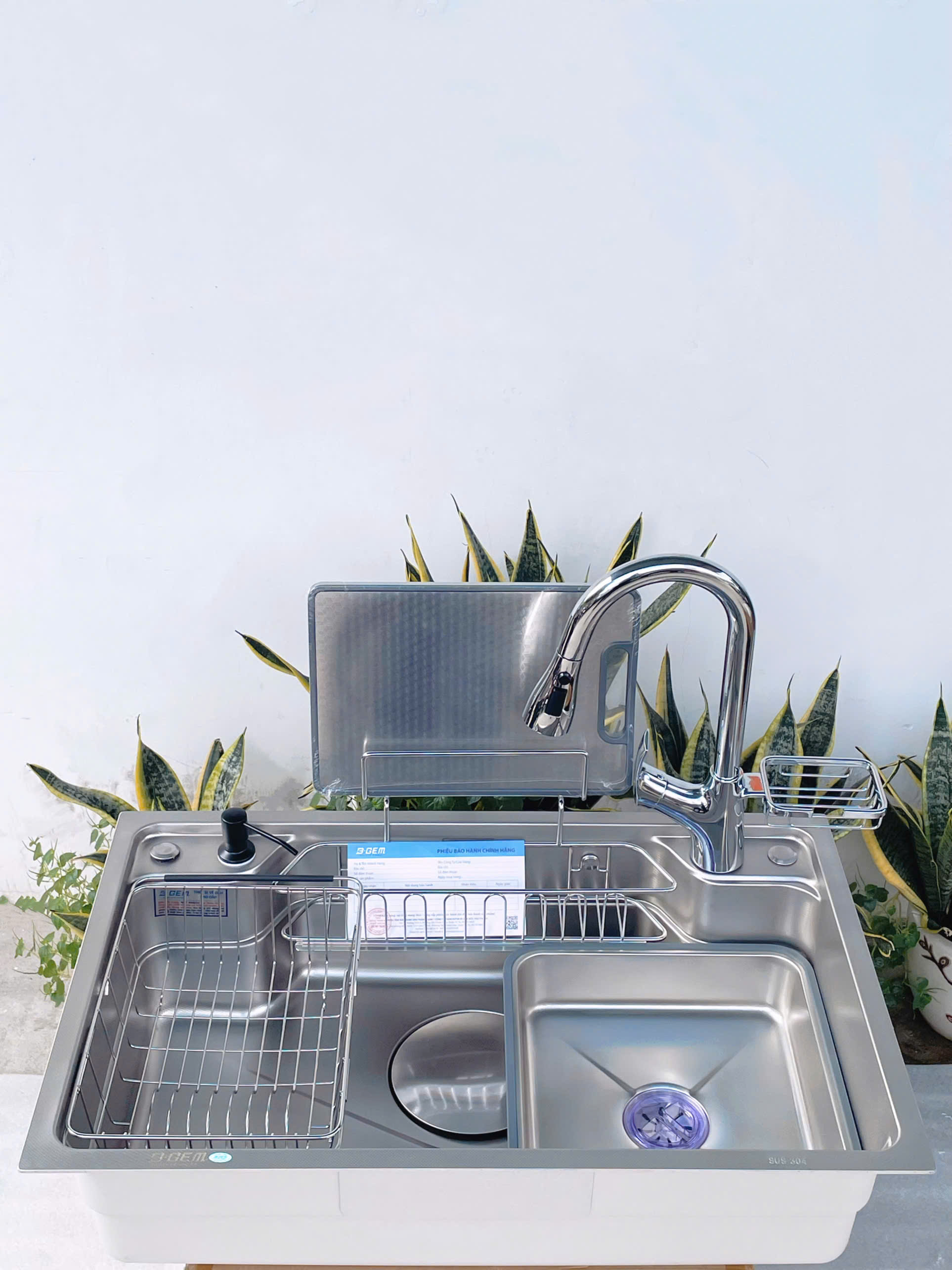 Phụ kiện: Siphon, khay inox, thớt inox tăng giảm, rổ gác thớt