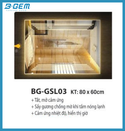 GƯƠNG SOI CAO CẤP CẢM ỨNG TẮT MỞ, NHIỆT ĐỘ, HIỂN THỊ GIỜ B-GEM BG-GSL03