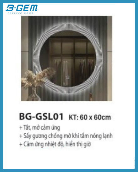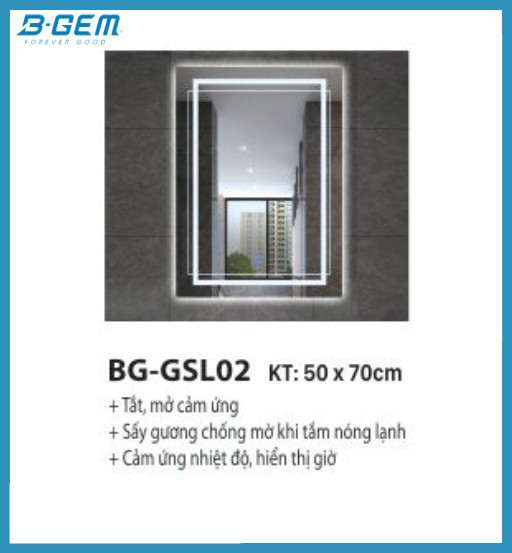 GƯƠNG SOI CAO CẤP CẢM ỨNG TẮT MỞ, NHIỆT ĐỘ, HIỂN THỊ GIỜ B-GEM BG-GSL01